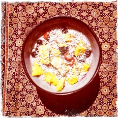 In the morning pour pudding-like mixture into a bowl and add unsweetened shredded coconut, hemp and sunflower seeds and your favorite fresh fruits. I love blueberries, strawberries, bananas and mangoes. If the fruit itself doesn’t make it sweet enough you can drizzle on agave or maple syrup.