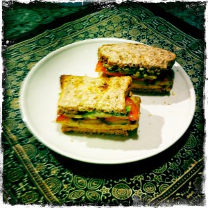 This is a quick and heathy meal to make. You can usually find the burgers in the cooler section in your local health food store, near the tofu products. I find the burgers to be a little fat so I like to slice them in half, this also gives you more burgers for your money! Fry the tempeh in coconut or olive oil until crispy. If you like, melt some organic cheese on top. I toasted some sprout bread added stoneground mustard, organic ketchup, avocado, tomatoes, cucumbers, sprouts and a pickle! Choose you own adventure…