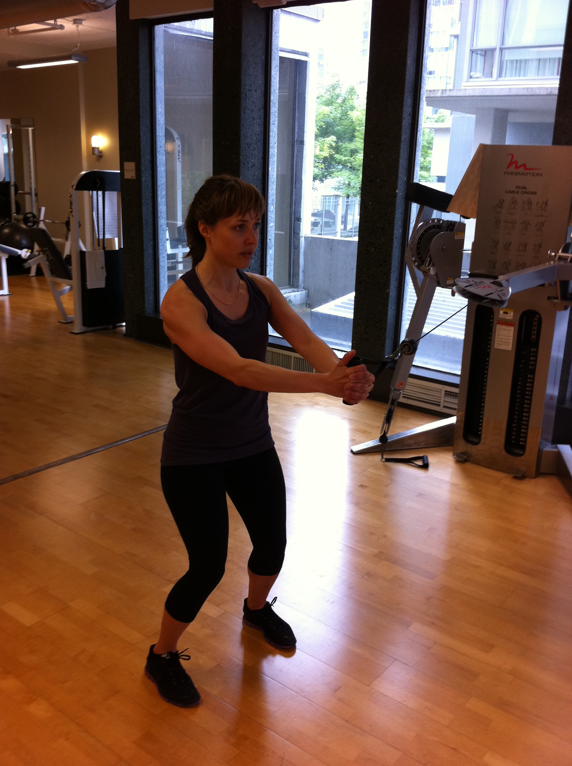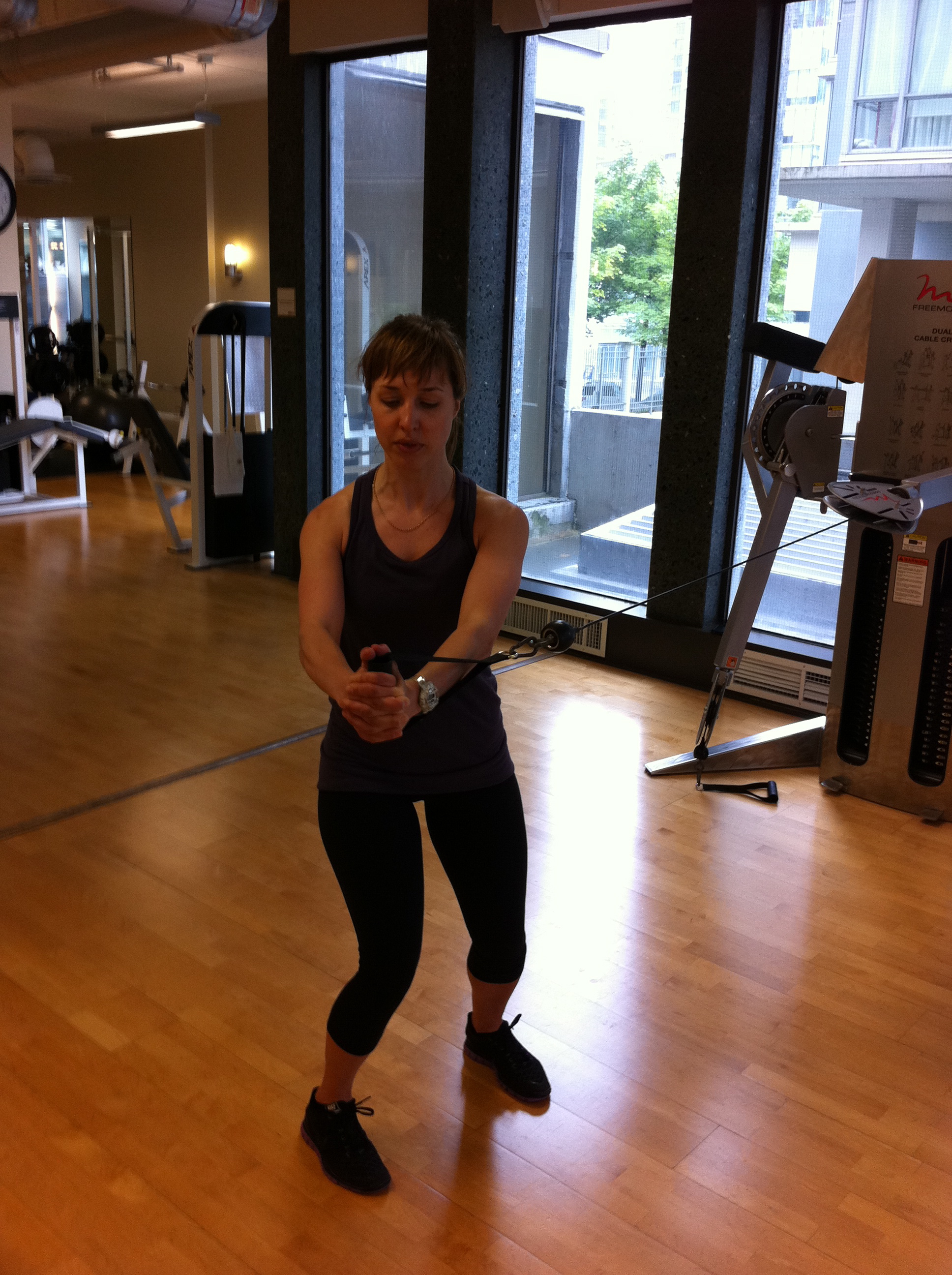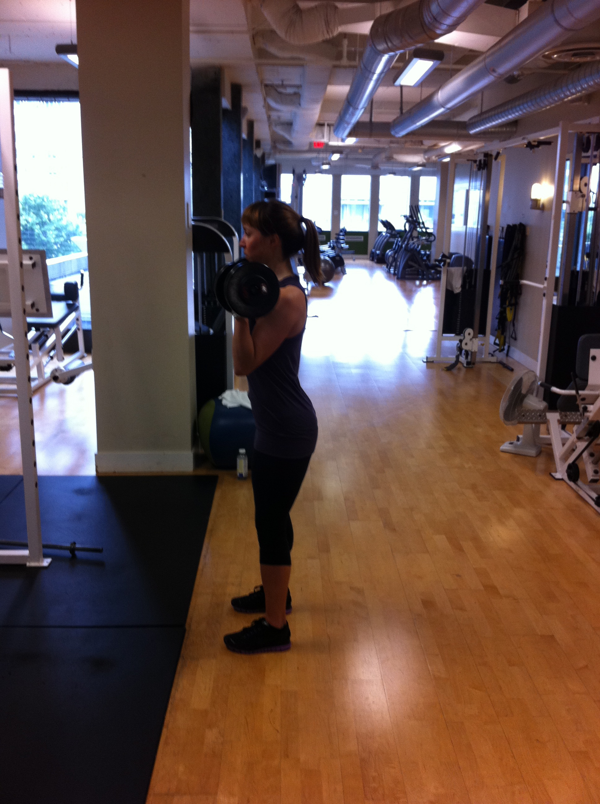 I am a Personal Trainer out of Mixx Fitness studio in Coal Harbor, Vancouver. My friend Katie and I were having such a good workout today we decided to document it and share it here! This full body workout started with us doing 20 minutes of hill sprints on the spin bike. We then set up a three station speed and agility circuit which we did twice through, one minute each station. After that, we did a three station core circuit, 12-15 reps each exercise. We finished off the workout with a strength circuit with four exercises, twice through 12- 15 reps each.