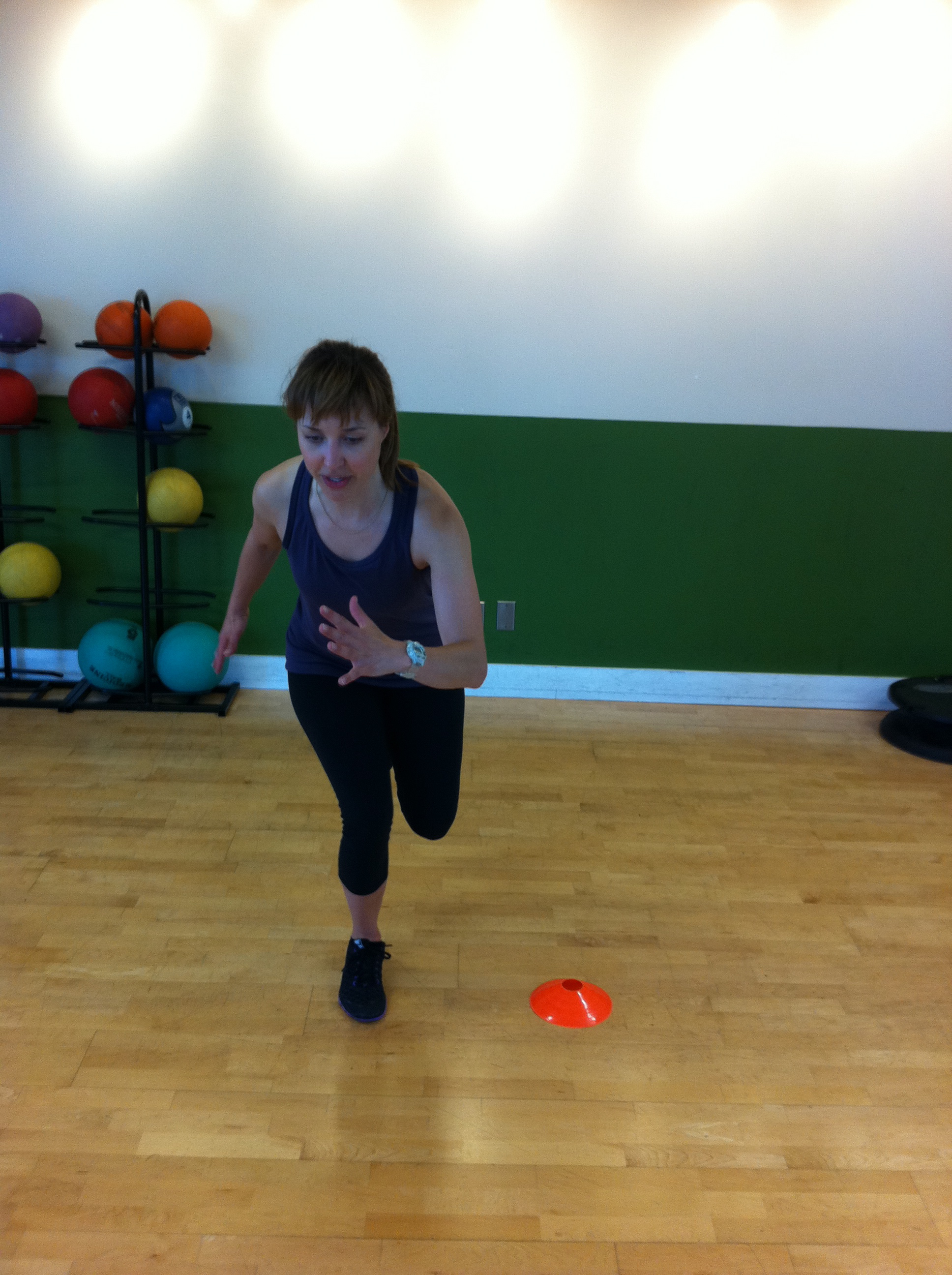 -Place cone and perform a single leg lateral explosive movement over top of it.