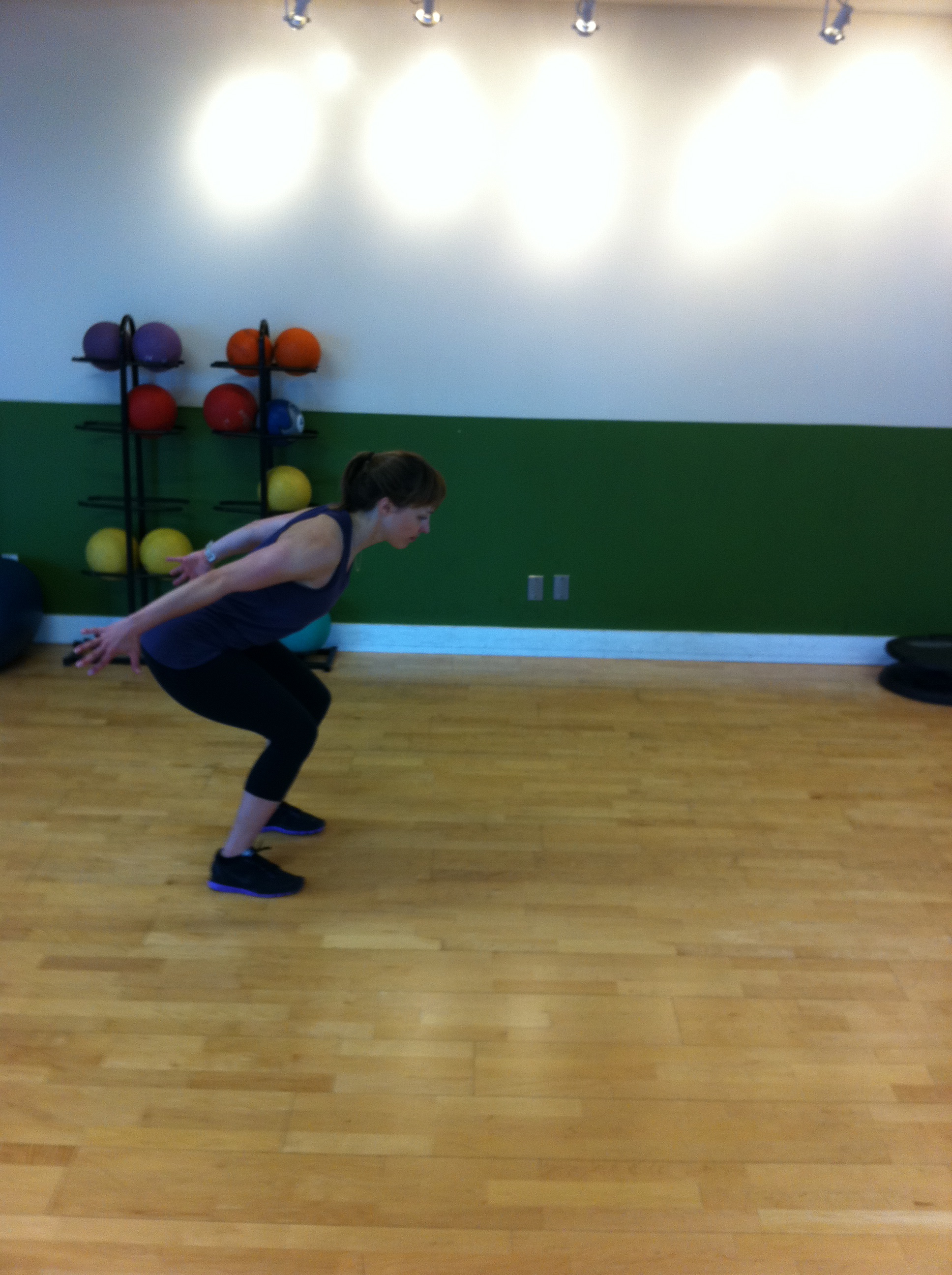 -Full squat with arms extended, holding dumbels beside your hips